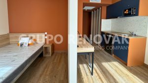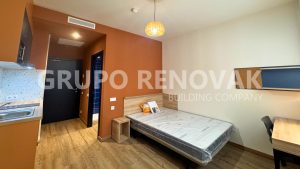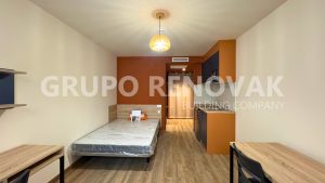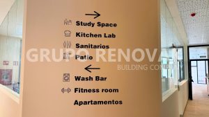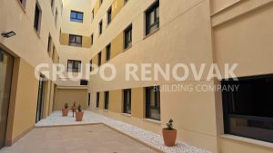 El inicio de esta obra ha resultado muy complejo al tener que ejecutar la losa de cimentación en 4 fases. La excavación ha tenido sus problemas al encontrar a poco mas de 1,40 metros de profundidad bolsas de aguas gravitacionales. Ello, y la dificultad añadida de colindar con edificios de más de 70 años de historia, ha llevado a la empresa constructora de Grupo Renovak Building Company a actuar con cautela y ejecutar una losa de cimentación de 80 cm con un hormigón de limpieza de 10 cm y una bolsa de grava de 20 cm sobre la que levantar toda la estructura de la futura residencia de estudiantes.