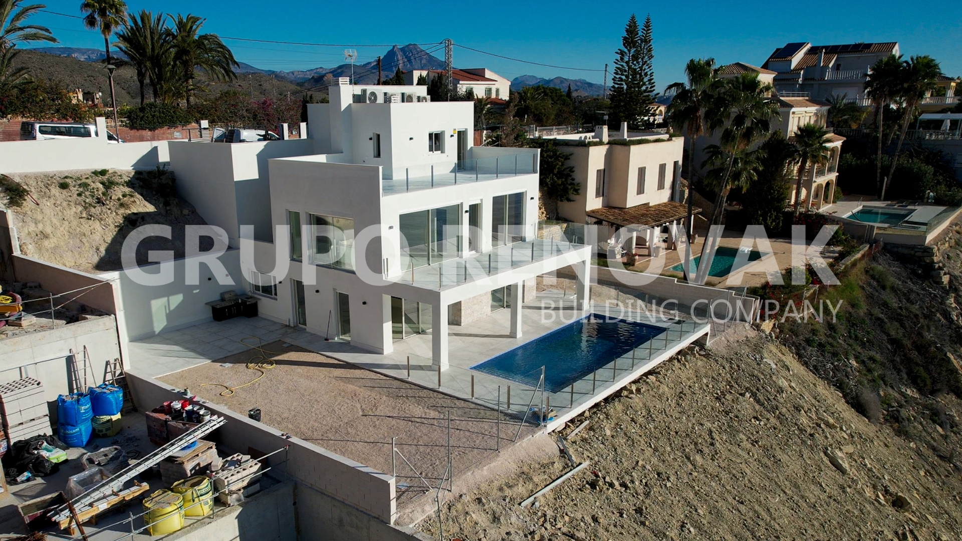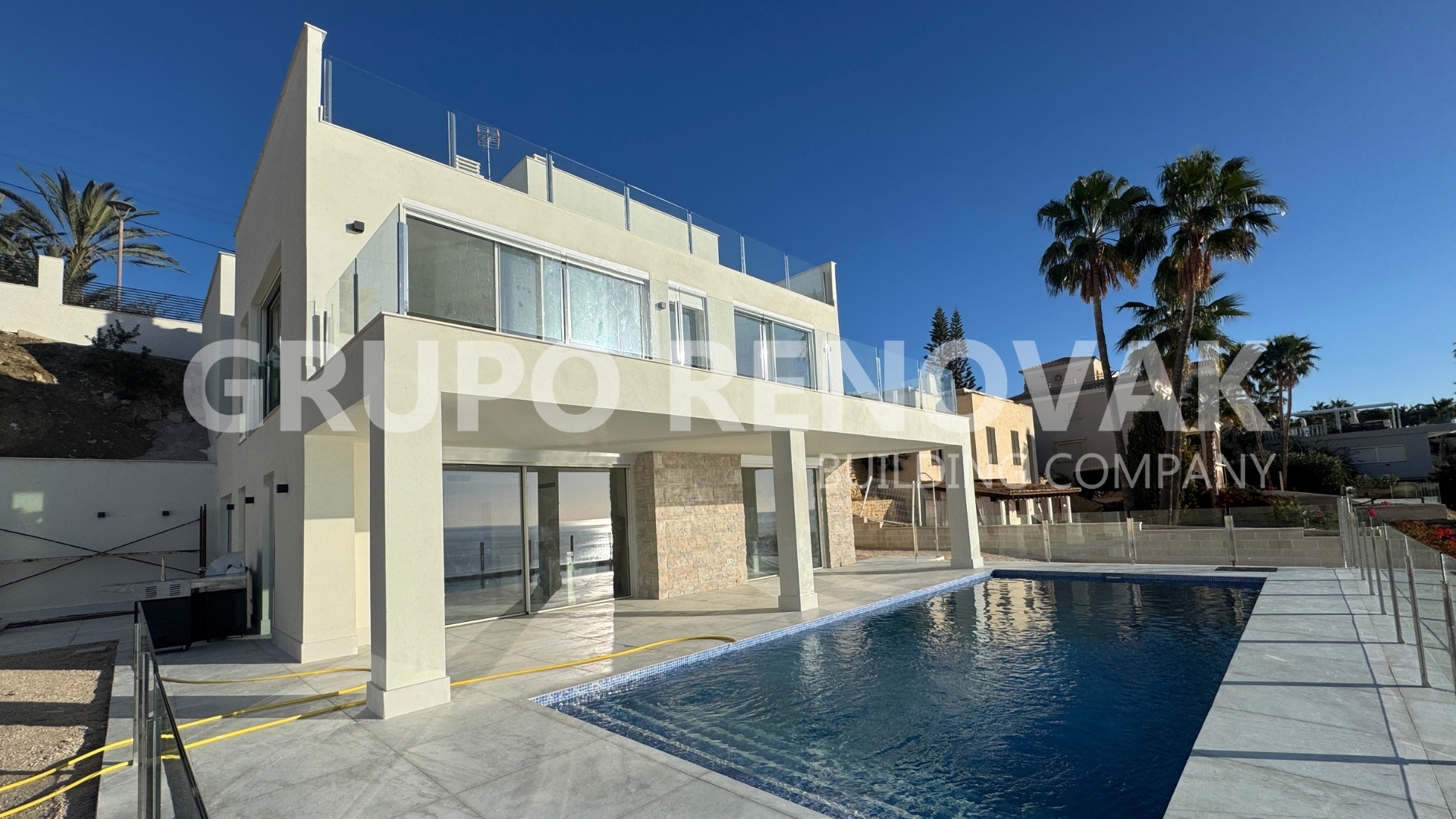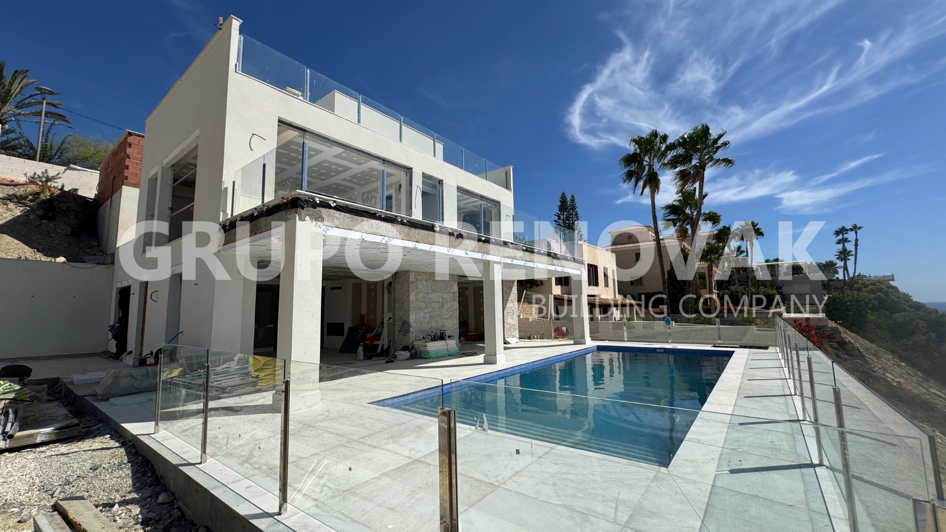 Ya han comenzado las obras de construcción de la lujosa villa a pie del Mediterráneo que RK Construcción está desarrollando en el Pueblo Acantilado de Campello. Más de 325 metros cuadrados distribuidos en 3 alturas, con unas vistas espectaculares sobre el Mediterráneo.