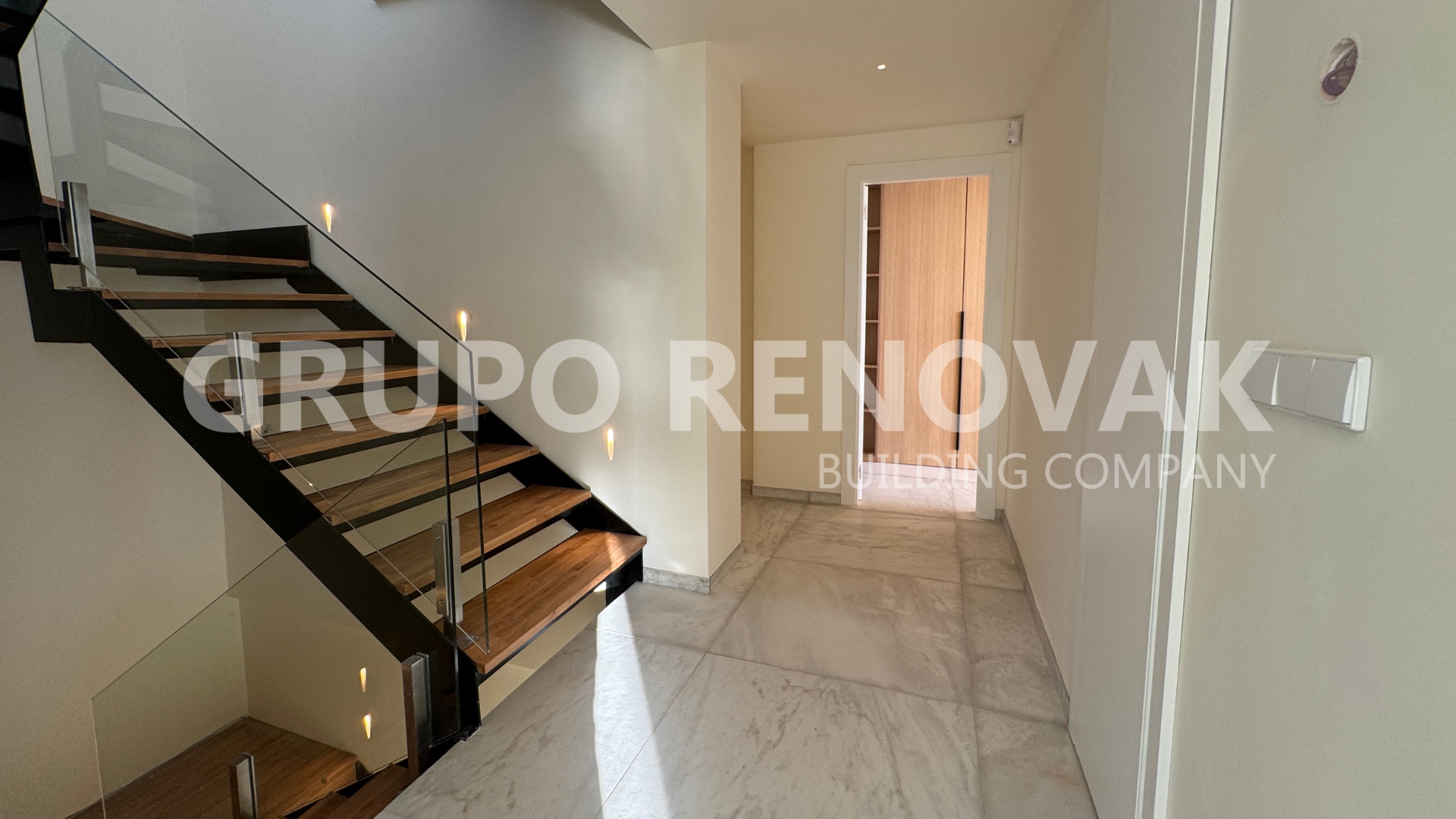 El proyecto contempla la instalación de suelo radiante, aerotermia, domotización, persianas motorizadas, escalera de acero lacado, barandillas de vidrio, y un sinfín de detalles que lo convierte en la casa de TUS sueños.